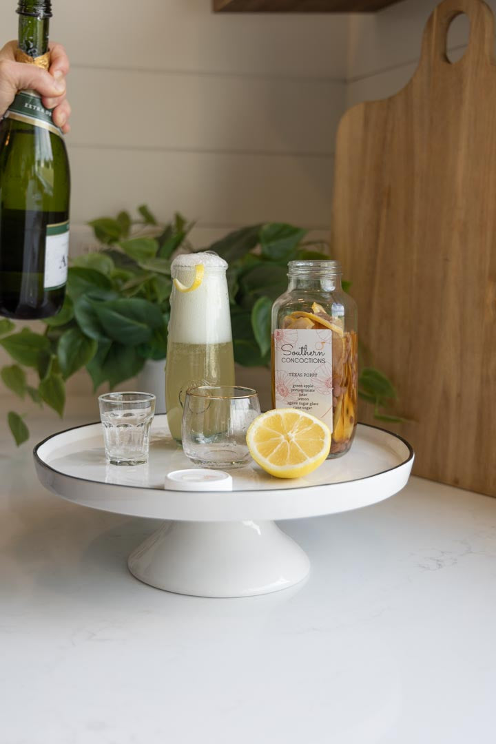 - Strain out 1.5 oz shot of infusion into champagne flute